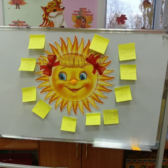В группе царила дружеская атмосфера. По окончании игры все команды были награждены дипломами за победу в различных номинациях, сладким подарком и книжкой. Приято было получить от родителей «обратную связь»: взрослые оставили свой отзыв о проведенной игре на стикерах, которыми украсили сказочное солнышко.